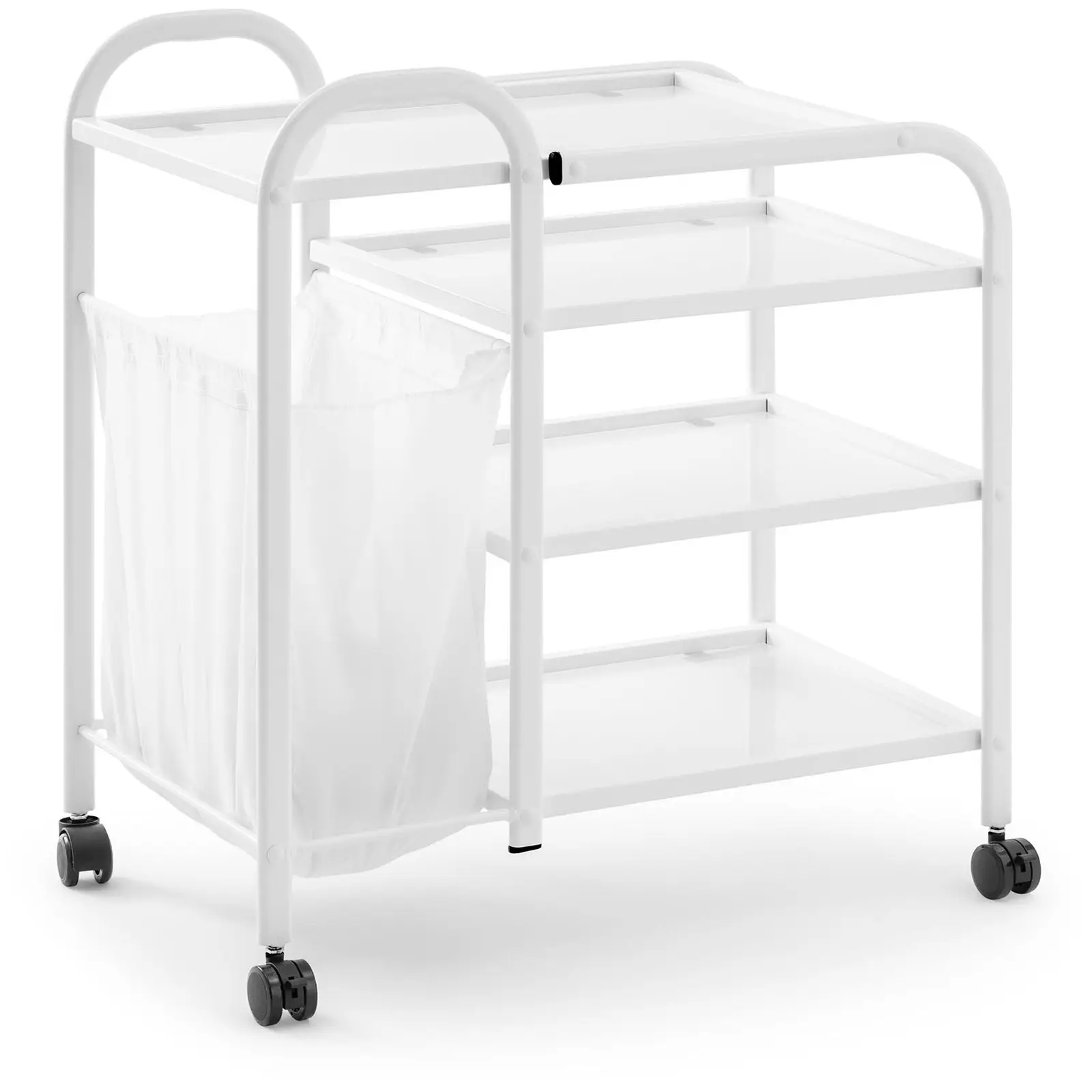 physa - din ekspert på helse & skjønnhet - tilbyr deg et praktisk så vel som mobilt oppbevaringssystem med denne kosmetiske vognen. Enten i skjønnhets- og frisørsalonger eller på private bad: med den plassbesparende salongvognen kan du organisere kosmetikk eller håndklær på 4 hyller på en optimal måte kosmetikk, rengjøringsprodukter eller håndklær. I tillegg finner du en praktisk vaskepose for brukte vasketøy. Denne modellen imponerer med sin enkle eleganse, som passer inn i enhver interiørstil.